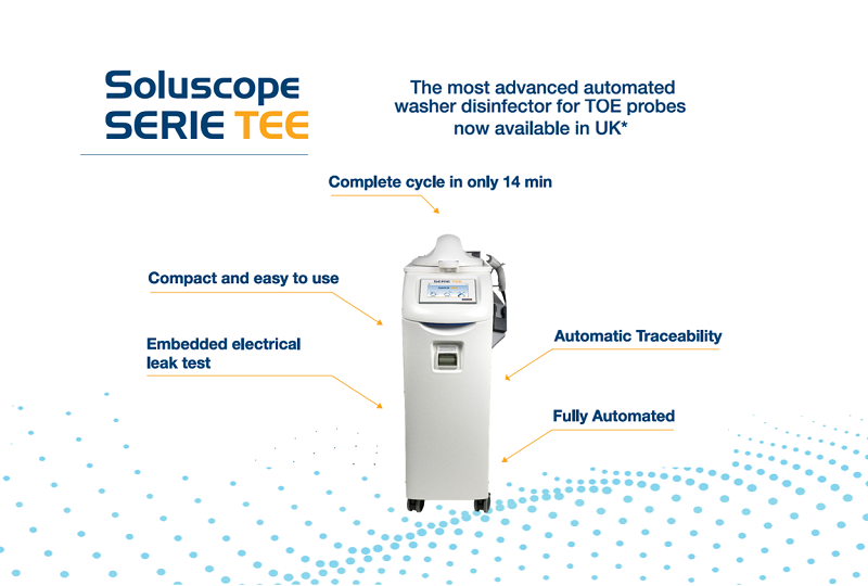 The fast and efficient device provides a complete cleaning and disinfection cycle in only 14 minutes. The machine function integrates also an electrical leak test. The addition of the Soluscope Serie TEE probe washer to the product offering in the UK will allow Nanosonics to continue to champion and support the adoption of HLD for ultrasound probes
